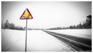 On a lonely road near Kiruna, Arctic Sweden, beware of dog sleds!