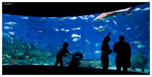 Visitors admire sharks at the Melbourne Aquarium, Australia