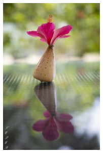 Wonderful reflection of flower in a shell.